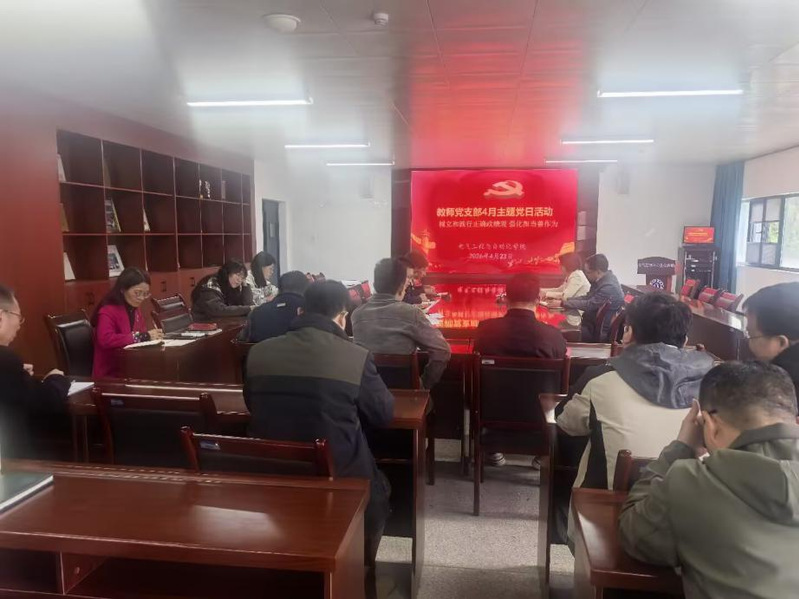 4月23日下午,电气学院教师党支部在产教融合中心会议室24341开展4月主题党日活动,本月活动主题为“树立和践行正确政绩观 强化担当善作为”,会议由院教师党支部书记陈兮主持,全体教师党员参会。