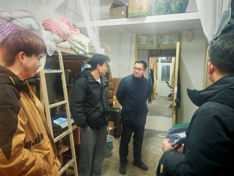 晚上9点半,排查组成员全体集合,根据学生宿舍分布情况分组分片推进走访工作。此次排查重点核查在校学生留校情况,确保留校学子底数清、去向明、信息准。走访现场暖意融融,领导与老师们深入宿舍与学生面对面交流,详细询问大家的留校原因、假期生活保障、科研进度及寒假规划等事宜。学院领导对留校研究生潜心钻研、刻苦攻关的精神给予充分肯定,同时叮嘱同学们合理平衡科研与作息,加强体育锻炼,及时增添衣物做好防寒保暖,兼顾学习效率与身体健康。