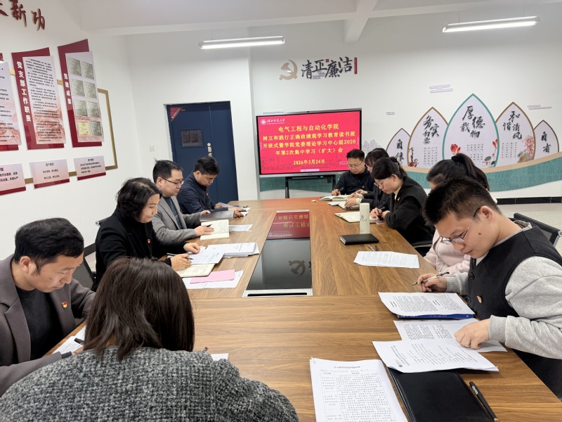 3月24日下午,电气工程与自动化学院党委理论学习中心组在产教融合中心24324会议室举行树立和践行正确政绩观学习教育读书班开班式暨学院党委理论学习中心组2026年第2次集中学习(扩大)会,院党委书记严海燕主持开班式及集体学习。全体院领导、党委委员、学院党委理论学习中心组成员和党政办、分工会、团委负责人,各党支部书记及辅导员参加会议。