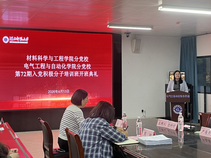 为深入学习贯彻习近平新时代中国特色社会主义思想,从严从实加强入党积极分子教育培训,2026年4月13日晚,材料科学与工程学院联合电气工程与自动化学院第72期入党积极分子培训班开班典礼,在产教融合中心24341会议室隆重举行。