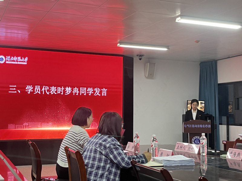 学员代表时梦冉发言表示,将以此次培训为契机,端正入党动机、深学细悟党的理论,严守培训纪律、锤炼优良作风,坚持知行合一,时刻以共产党员标准严格要求自己,践行“请党放心,强国有我”的青春誓言,以实际行动为实现中华民族伟大复兴贡献青春力量。